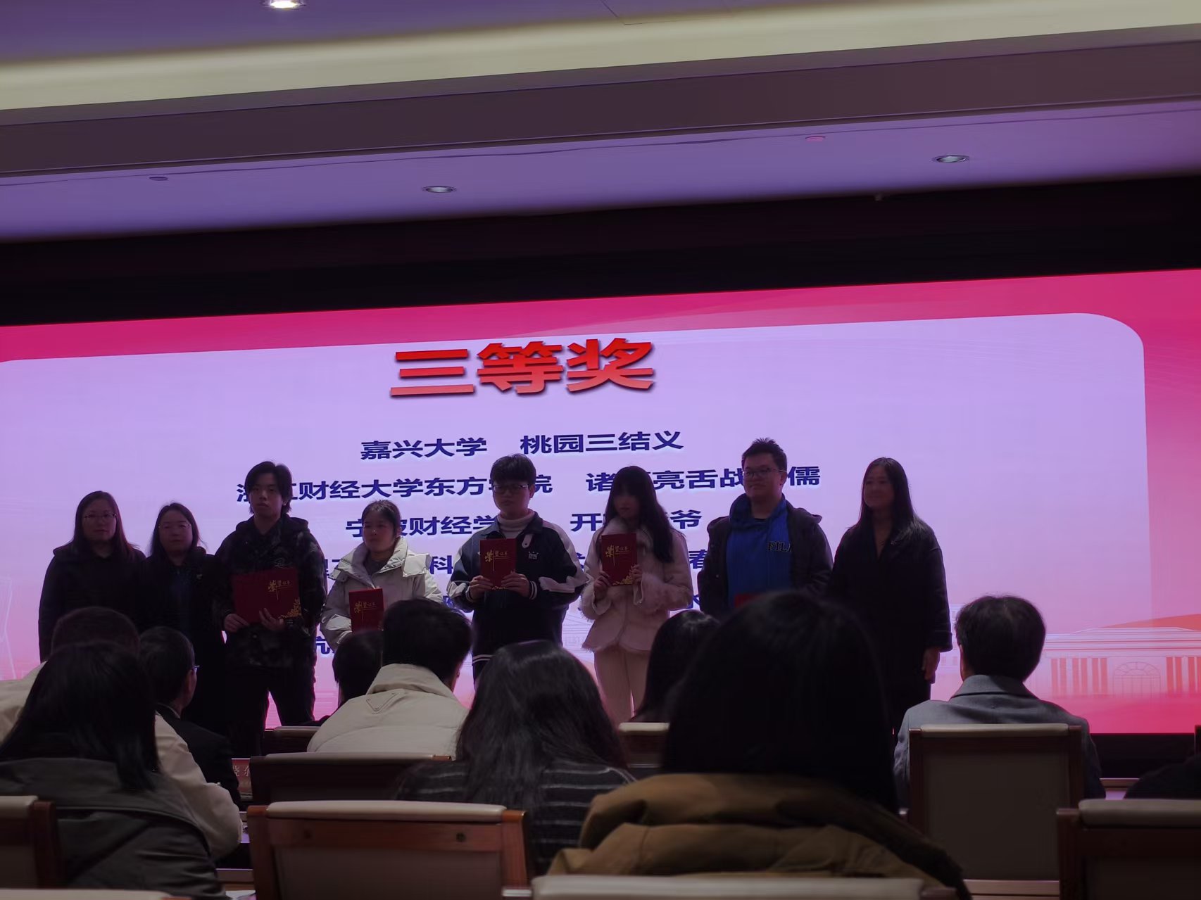 12月27日,由浙江省人民对外友好协会、日本静冈县日中友好协会主办,浙江工商大学东方语言与哲学麻豆视频 、浙江麻豆视频-成人视频麻豆-麻豆av 东方语言文化麻豆视频 承办的“第十四届浙江省日剧PLAY大赛”圆满落幕。经过激烈角逐,我校日语专升本241班学生房奕挺、何钻、邹光鹏、朱文杰、郁正阳组成的团队,在周艳君、张冬老师的悉心指导下,凭借改编剧目《桃园三结义》荣获大赛三等奖。