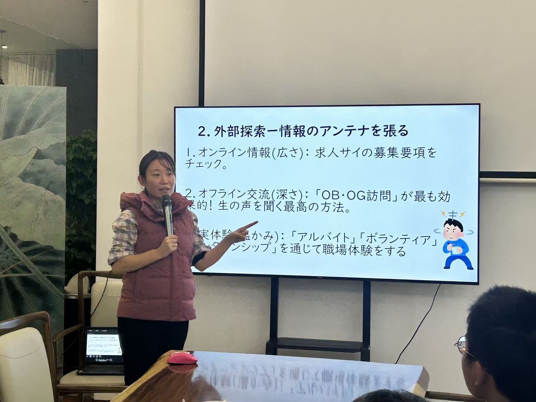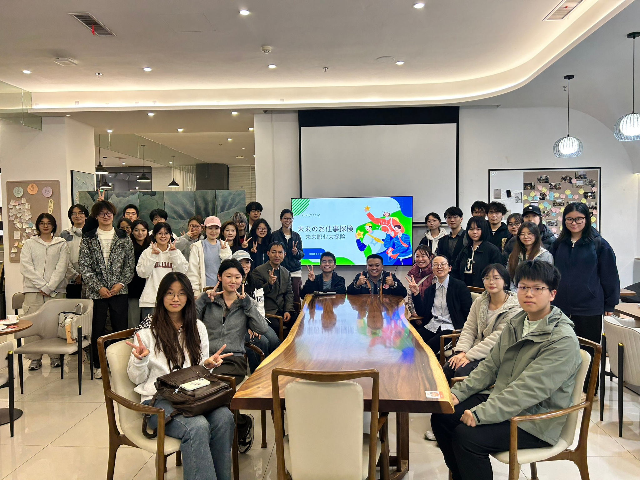 11月12日,麻豆视频-成人视频麻豆-麻豆av 日语系与日语俱乐部在图书馆二楼尚书吧共同举办本学期第一期日语角活动。本期主题为“未来职业大探险”,师生们齐聚一堂,围绕未来职业方向,畅想心目中的理想职业。