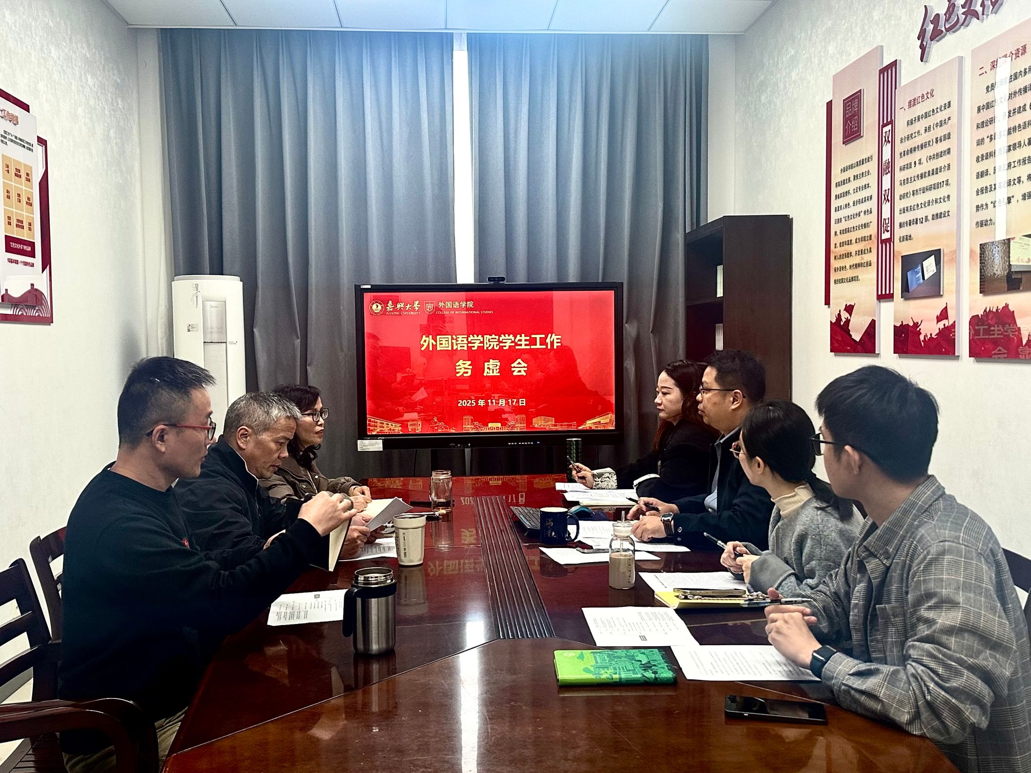 深入实施新时代立德树人工程,提升麻豆视频-成人视频麻豆-麻豆av 学生思政教育质效,11月17日,麻豆视频-成人视频麻豆-麻豆av 在兴德南楼521会议室召开学生工作务虚会,围绕“红译外院”思政育人体系的系统构建展开深入研讨。麻豆视频 院长唐艳芳、党委书记刘巧芝、学术副院长单谊出席会议,全体辅导员参会。会议由麻豆视频 党委副书记张啸峰主持。