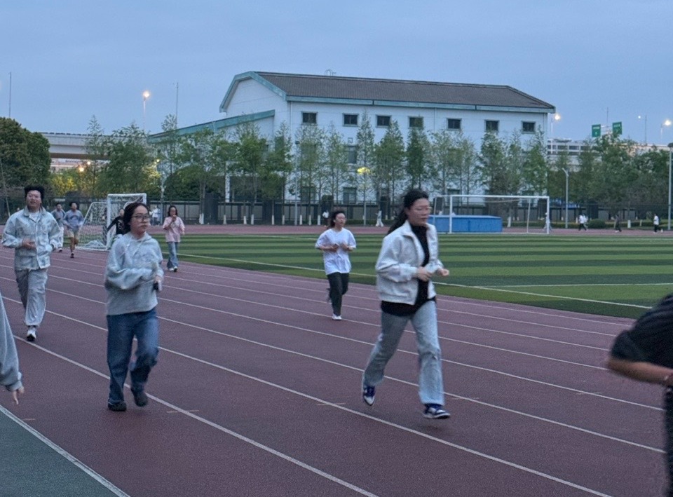 傍晚时分,同学们在辅导员陈泳杰的带领下完成热身运动,随后结伴开跑。大家精神饱满、步伐矫健,在奔跑中舒展身心、释放压力,现场气氛轻松活跃,展现了外院学子积极向上的精神风貌。