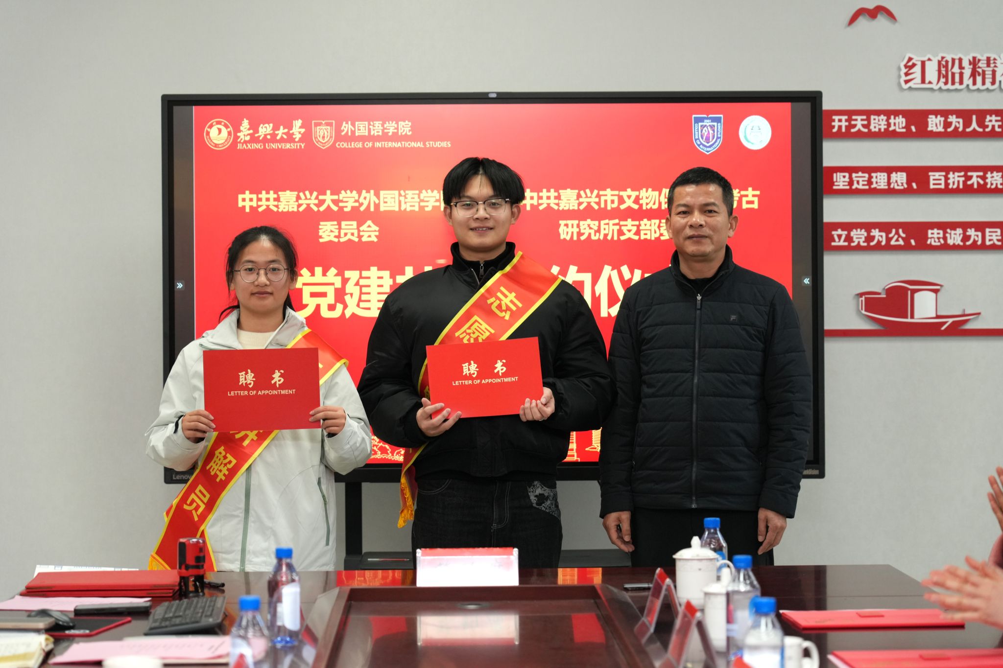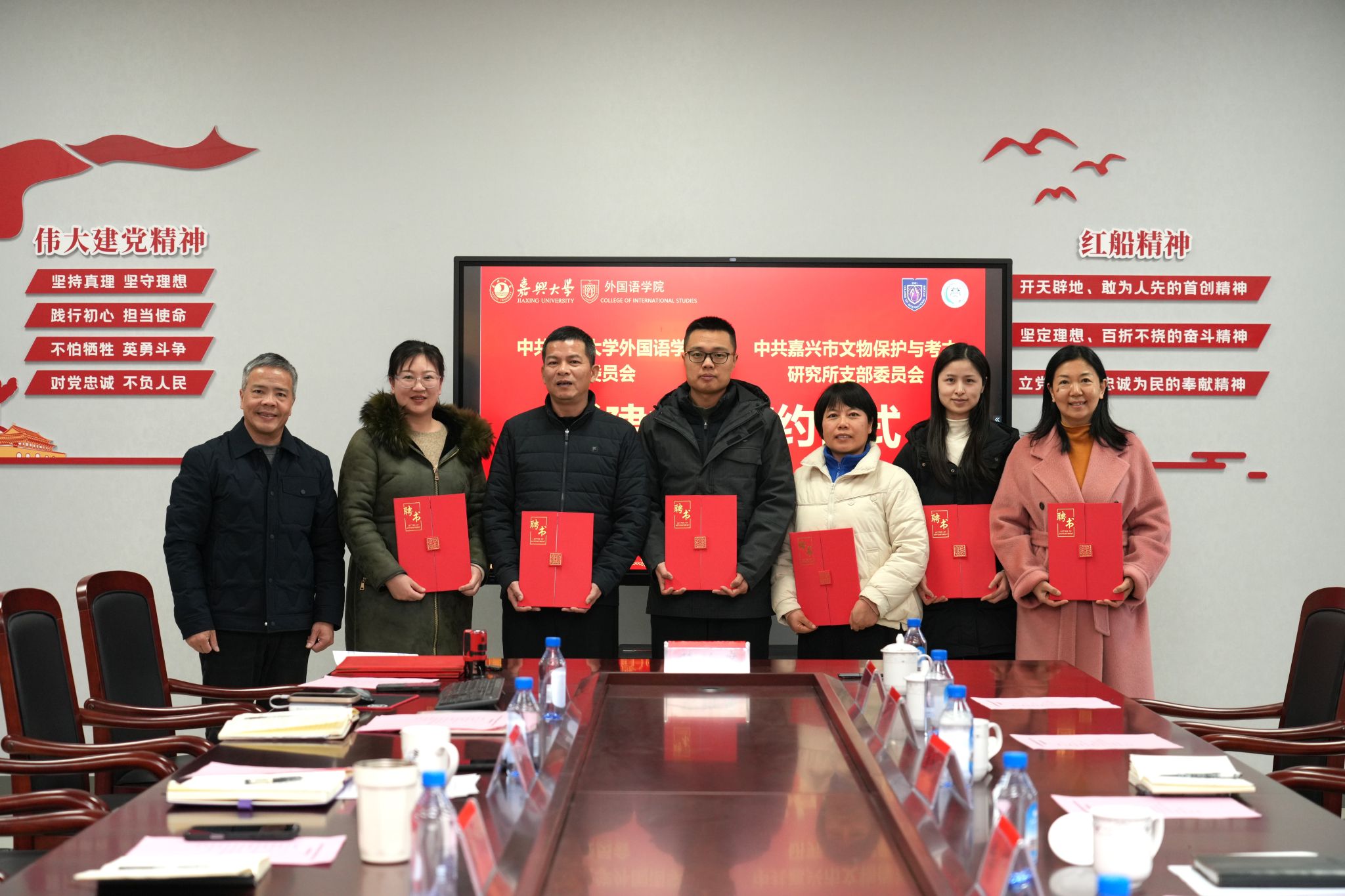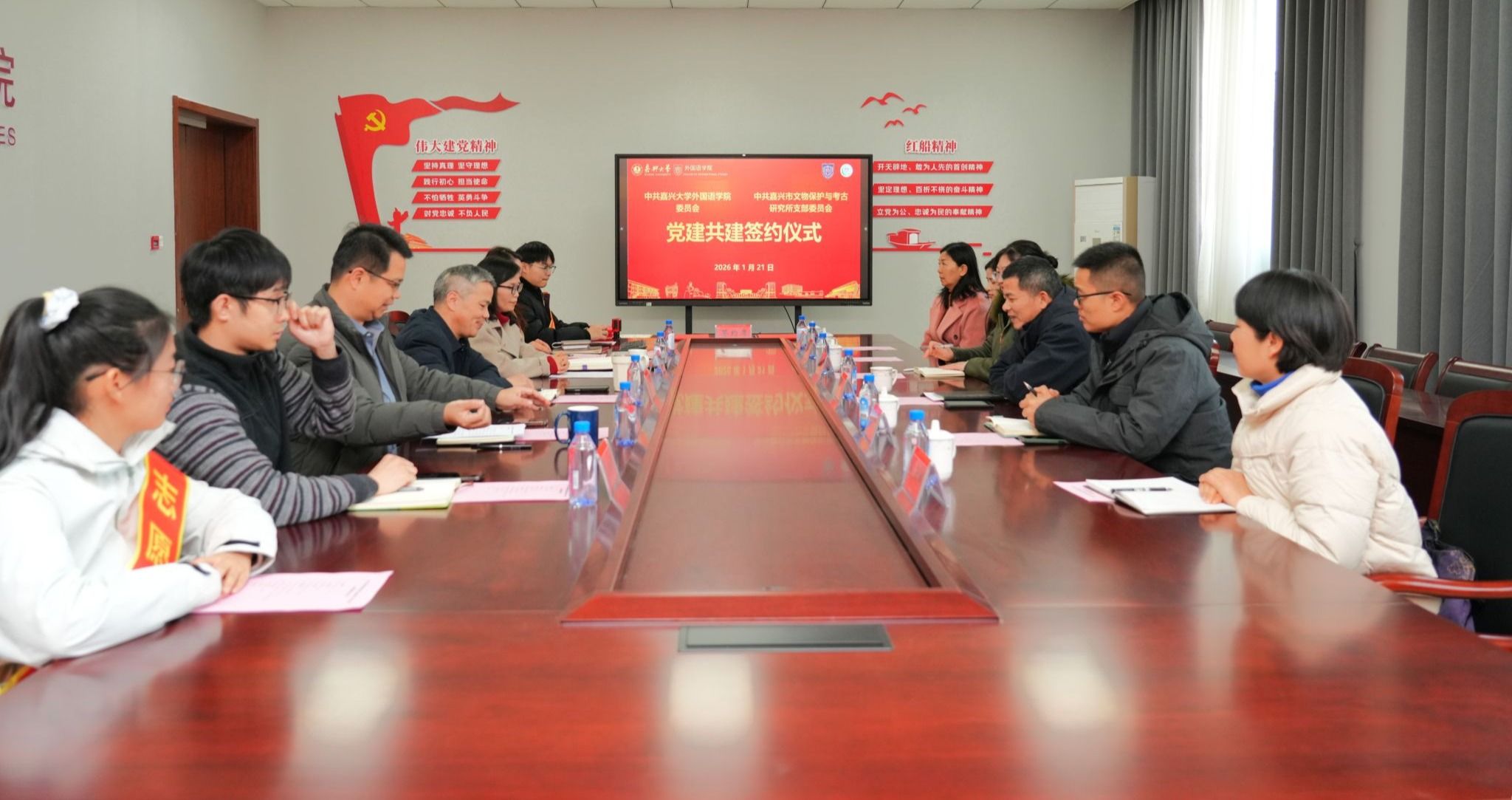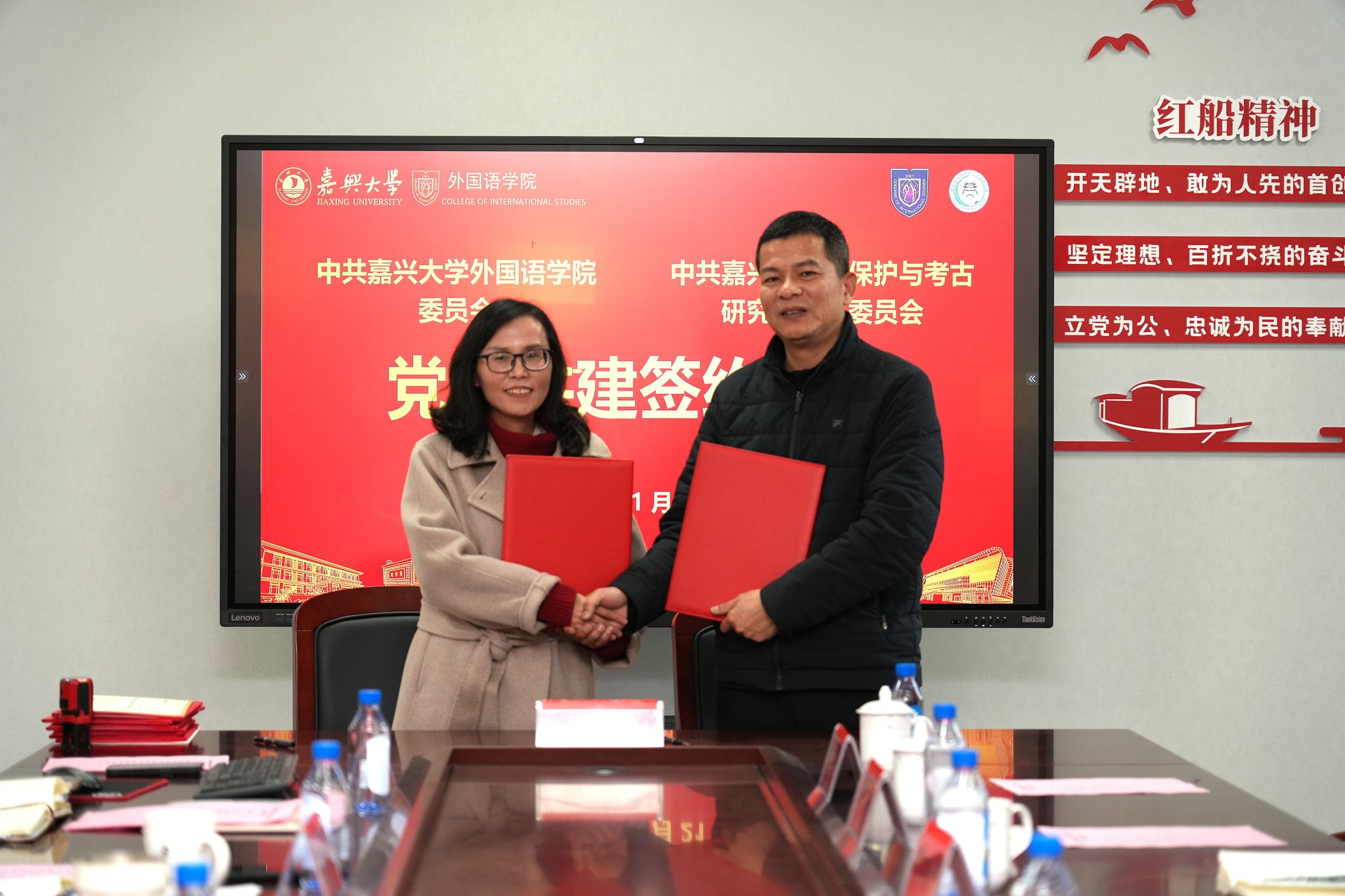 1月21日下午,麻豆视频-成人视频麻豆-麻豆av 党委与嘉兴市文物保护与考古研究所党支部在兴德楼南楼516会议室举行党建共建签约仪式。麻豆视频 院长唐艳芳、党委书记刘巧芝,嘉兴市文物保护与考古研究所所长张青出席签约。仪式由麻豆视频 党委副书记张啸峰主持,麻豆视频 师生代表和相关人员参加仪式。