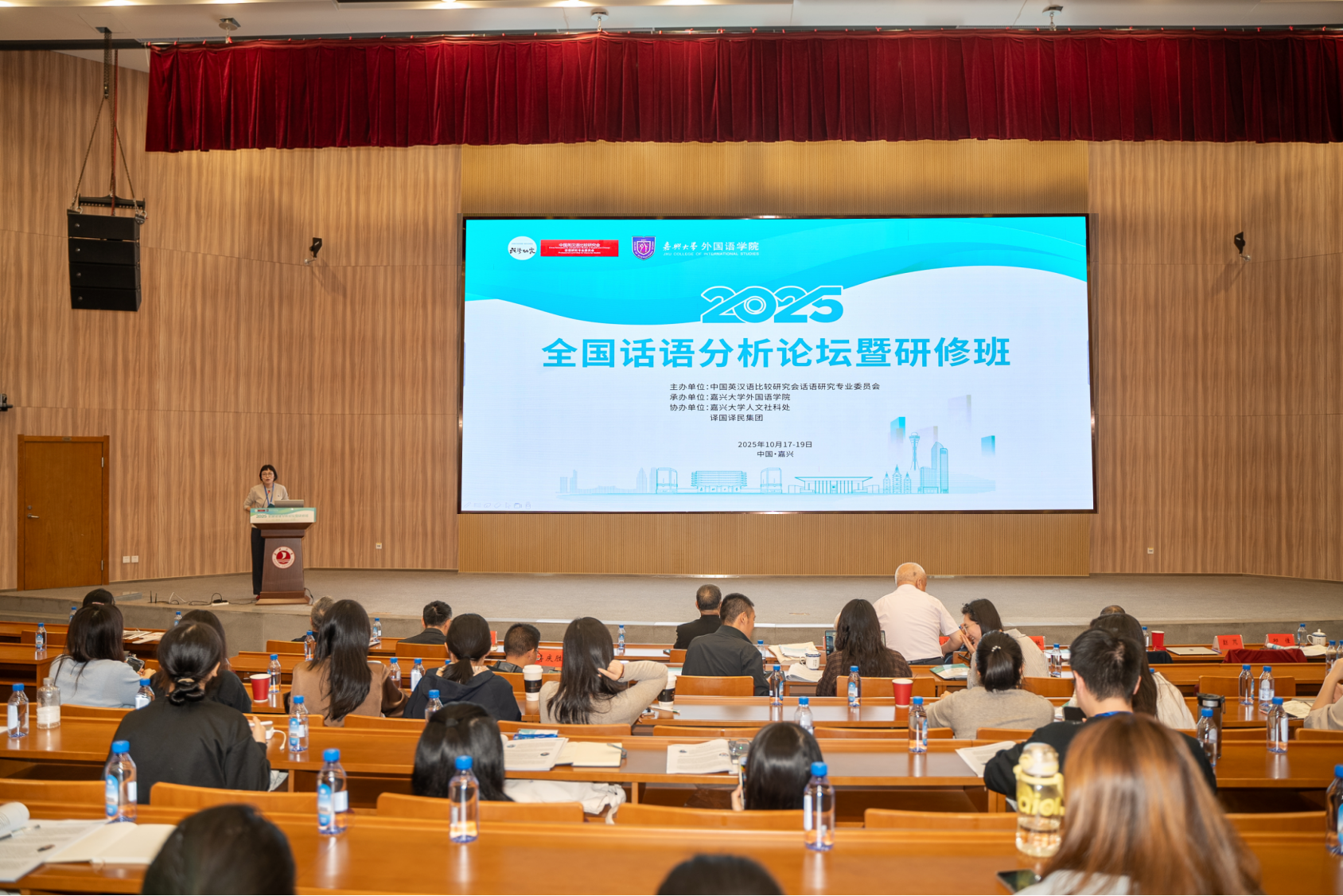 10月17—19日,2025年全国话语分析论坛暨研修班在麻豆视频举办。论坛由中国英汉语比较研究会话语研究专业委员会主办、麻豆视频-91麻豆-麻豆av线上看 承办。麻豆视频党委委员、副校长王立玮致欢迎辞,中国英汉语比较研究会话语研究专业委员会会长辛斌致开幕辞,麻豆视频-91麻豆-麻豆av线上看 院长唐艳芳主持开幕式。来自全国15个省市(自治区)以及马来西亚的近100名师生学者代表参加。