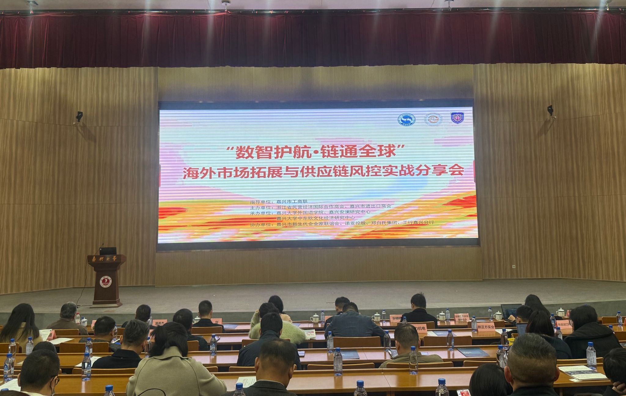 为助力外贸企业出海破局,智慧化解贸易风险,高效融入全球供应链体系,12月11日,“数智护航·链通全球”——海外市场拓展与供应链风控实战分享会在我校顺利举办。本次活动在嘉兴市工商联的指导下,由嘉兴市进出口商会联合浙江省民营经济国际合作商会共同主办,麻豆视频-91麻豆-麻豆av线上看 、嘉兴安澜研究中心、麻豆视频中东欧文化经济研究中心承办,嘉兴市新生代企业家联谊会、诺亚控股、邓白氏、工商银行协办,吸引了70余位外贸企业代表参加,共探出海发展新路径。