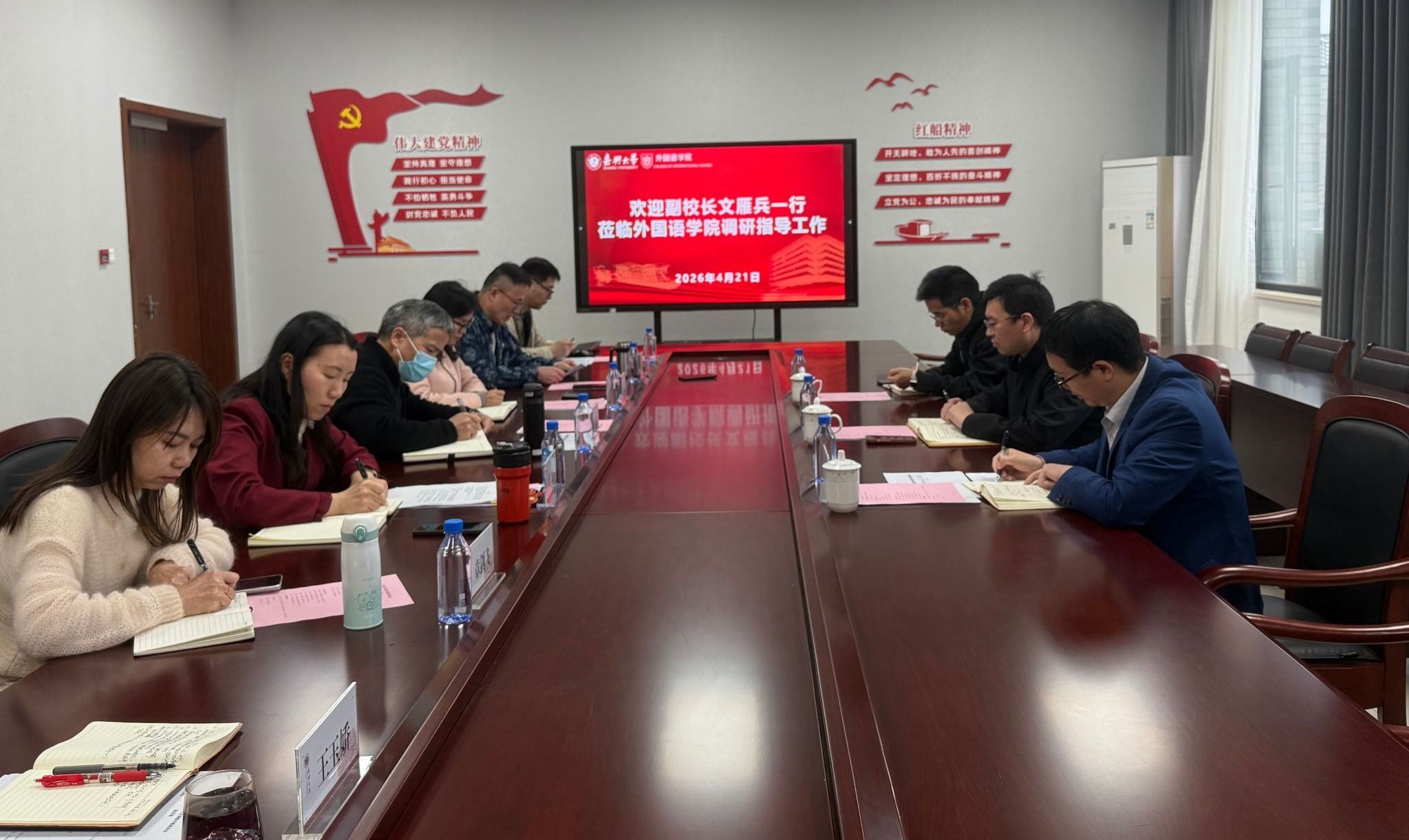 文雁兵充分肯定麻豆视频 在学科发展、人才培养、学位点建设等方面取得的成效,并就推动麻豆视频 高质量发展提出三点要求:一是坚持前瞻谋划,通过“区域国别学”交叉学科建设优化学科布局。主动对接国家战略,以区域国别研究为牵引整合资源、凝练特色,全力推进“国际事务”专业学位硕士点申报,打造特色鲜明、优势突出的交叉学科增长点,提升学科核心竞争力。二是紧扣时代发展机遇,推进学科——专业——人才培养一体化建设。紧跟地方经济社会发展需求,优化人才培养方案,强化实践教学与产教融合,推动学科建设、专业发展与人才培养同频共振、同向发力,着力培养适应区域发展的复合型、应用型外语人才,不断提升人才培养水平与社会贡献度。三是深化学科交叉融合,构建协同创新机制。充分挖掘地方文化资源,推动外语学科与国际事务、区域经济等领域交叉融合,整合校内外优质资源,培育创新团队与高水平科研成果,以学科交叉赋能麻豆视频 高质量发展。